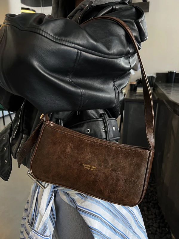 حقيبة كتف جلدية - رفيقتكِ المثالية. مصنوعة من جلد فاخر مشمع، تنسجم بسلاسة مع أي إطلالة، ومصممة خصيصًا لمن يتمتعن بحركة مميزة.