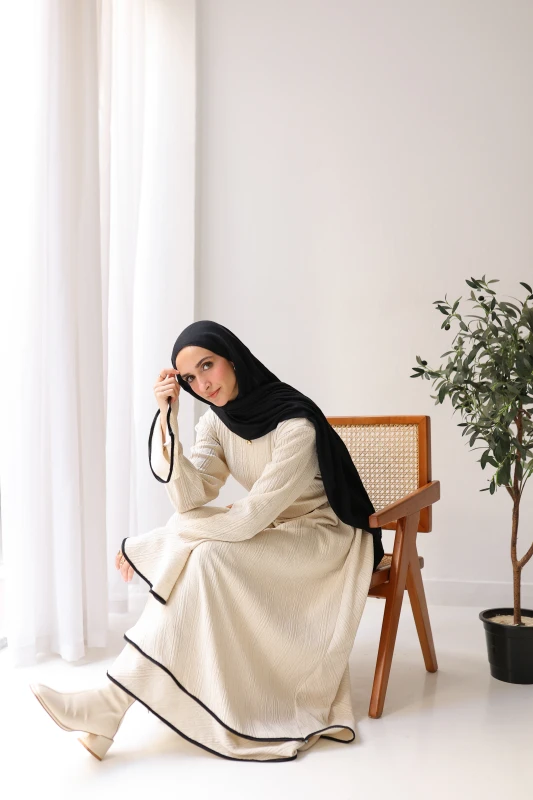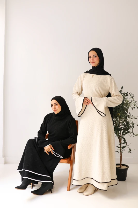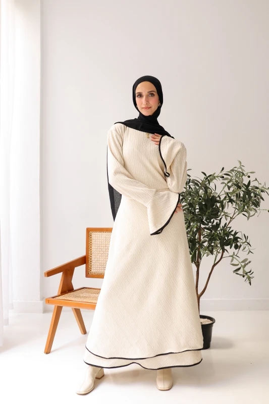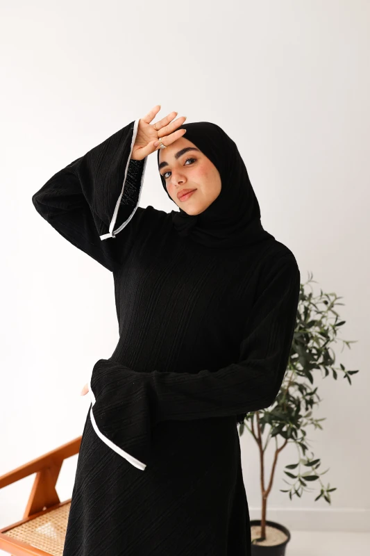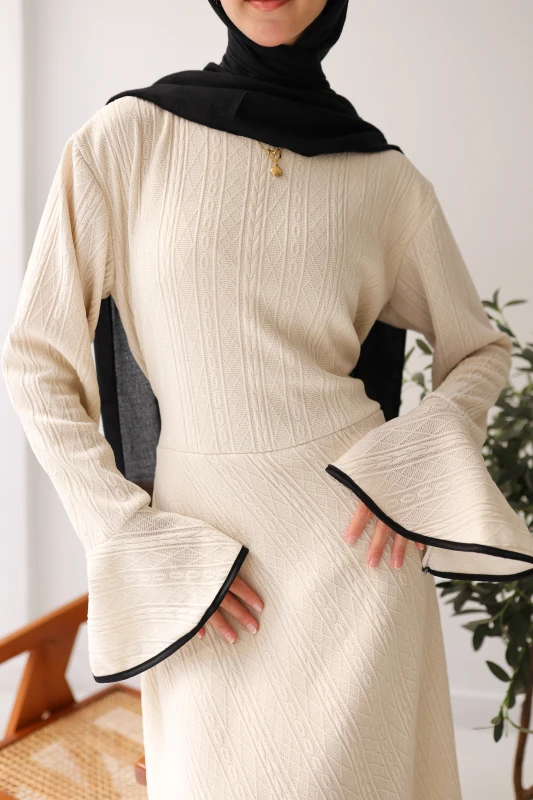 فستان شتوي فاخر ذو ملمس مميز وقصة عصرية، مصمم ليمنحكِ الأناقة والدفء. متوفر بألوان موسمية غنية لإطلالة أنيقة وجذابة.