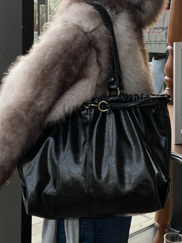 حقيبة تسوق واسعة مصنوعة من الجلد النباتي الفاخر، يمكن تعديل سعتها بحزام قابل للتعديل، مما يوفر لكِ إطلالة أنيقة ومريحة طوال اليوم. تُكملها الإكسسوارات الفاخرة وتضفي عليها لمسة جمالية راقية.