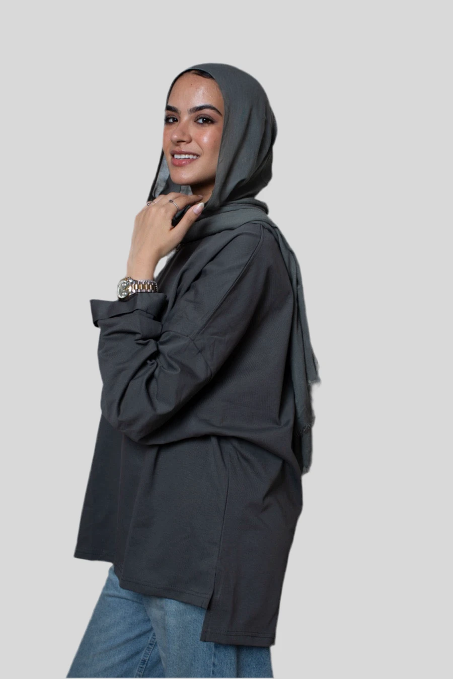 oft, breathable, and endlessly wearable. This long sleeve tee features an oversized fit with dropped shoulders and subtle side slits, designed for comfort and clean lines. A timeless staple perfect for layering or styling solo.