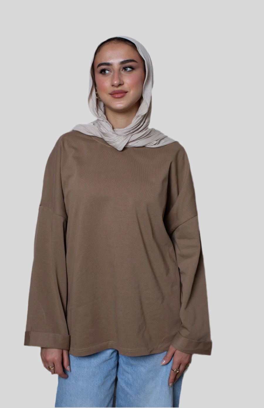 oft, breathable, and endlessly wearable. This long sleeve tee features an oversized fit with dropped shoulders and subtle side slits, designed for comfort and clean lines. A timeless staple perfect for layering or styling solo.