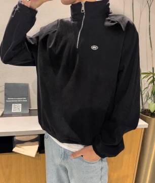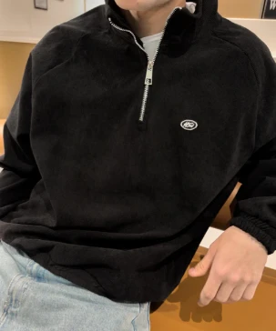 CORDUROY QUARTER-ZIP BLACK