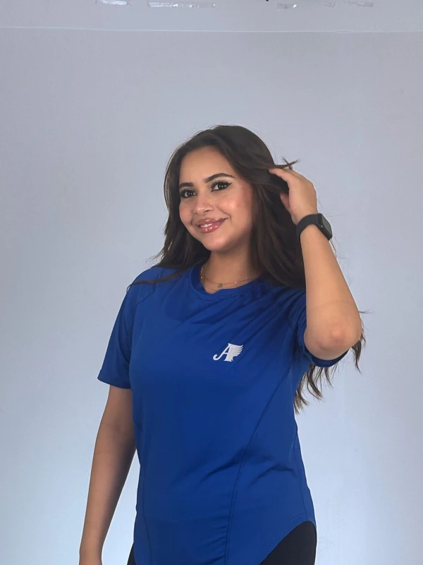 قميص رياضي/بلوزة بقصة منحنية، نصف كم