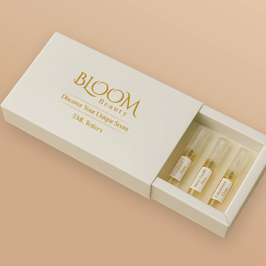 اكتشفي عطركِ المميز مع صندوق الاكتشاف الخاص بنا - الذي يضم 5 عينات عطرية (عينة الأنوثة، عينة الفانيليا الحلوة، عينة الفخامة، عينة الحب، وعينة المارشميلو) لتجربة فريدة من نوعها.