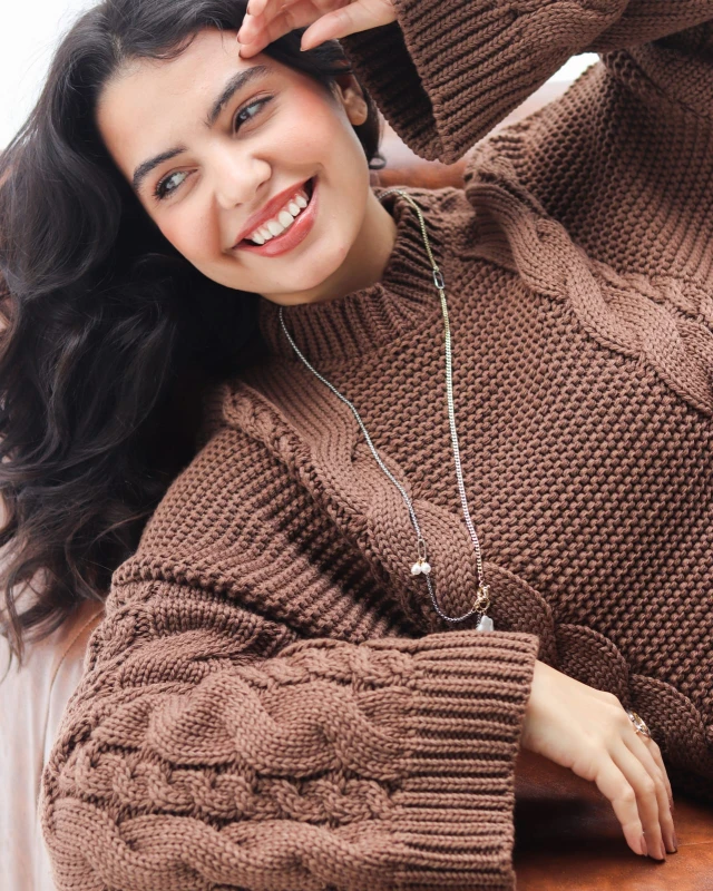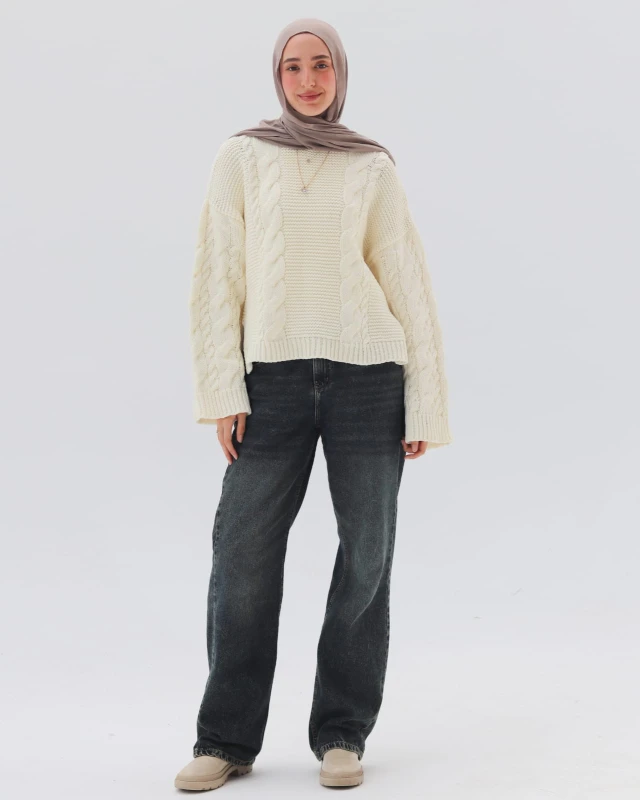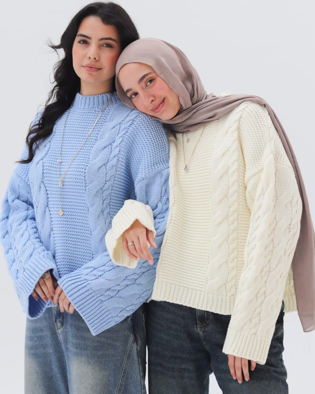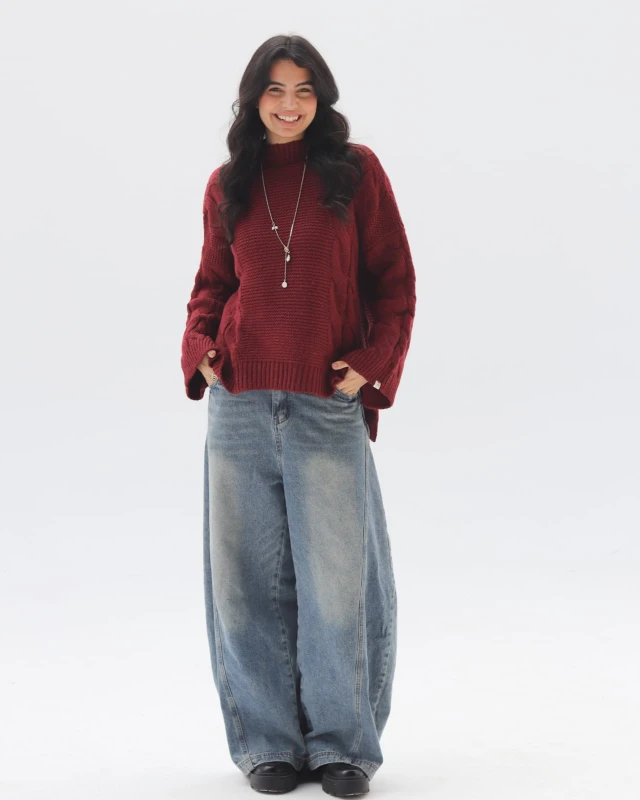 A soft, chunky knit wave sweater with wide sleeves and a relaxed fit - perfect for cozy winter styling.