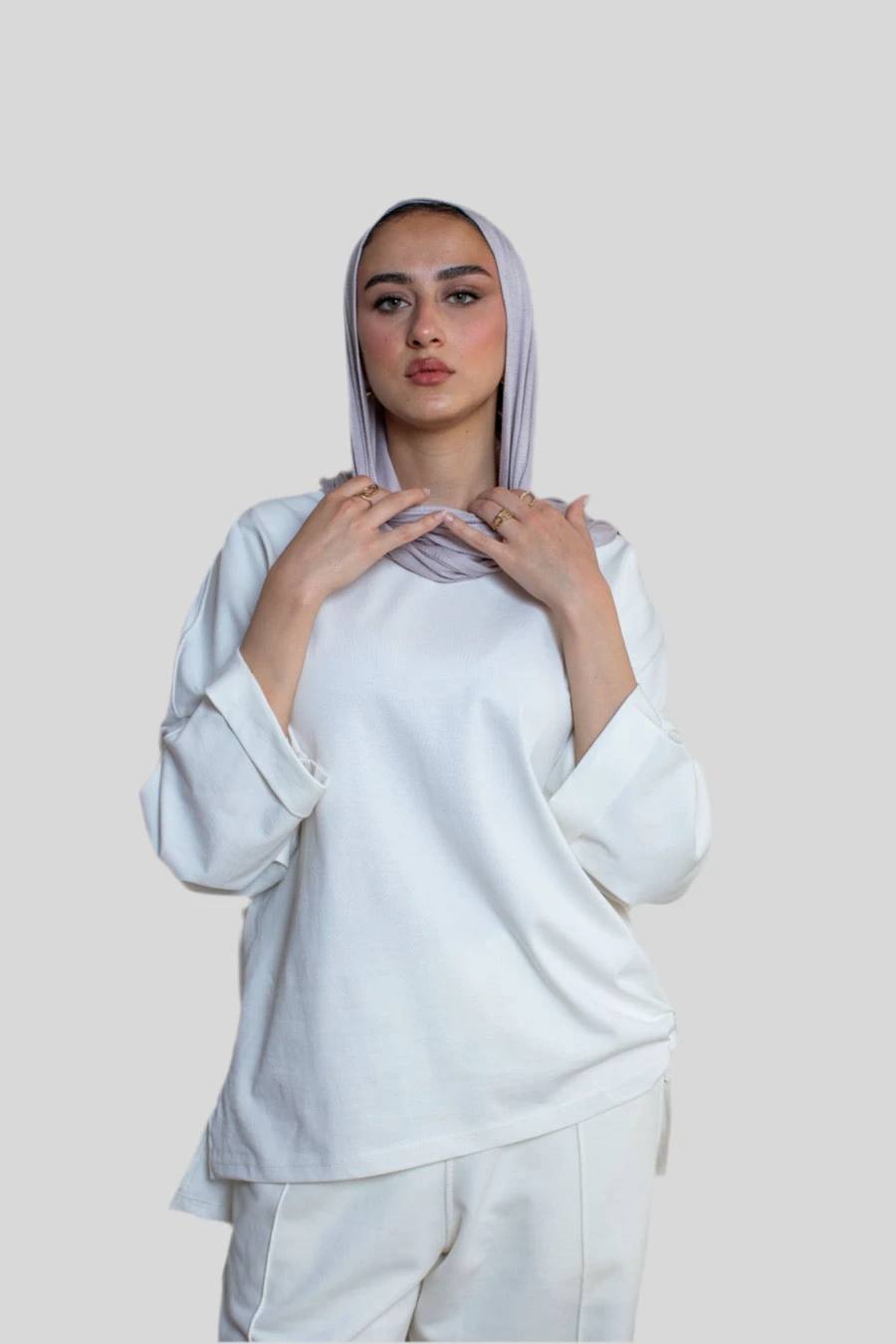 Soft, breathable, and endlessly wearable. This long sleeve tee features an oversized fit with dropped shoulders and subtle side slits, designed for comfort and clean lines. A timeless staple perfect for layering or styling solo.