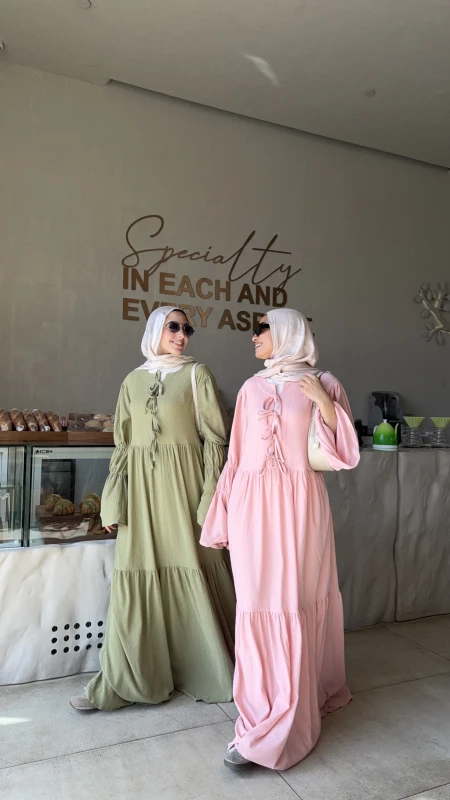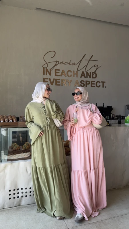 يجمع فستان زاليا بين الأناقة والراحة بفضل قماشه المنسدل الناعم وطوله البالغ 150 سم، مما يمنحكِ إطلالة أنيقة. يتوفر الفستان بألوان هادئة من الماتشا والوردي الفاتح، وهو الخيار الأمثل للمناسبات غير الرسمية والمناسبات الخاصة